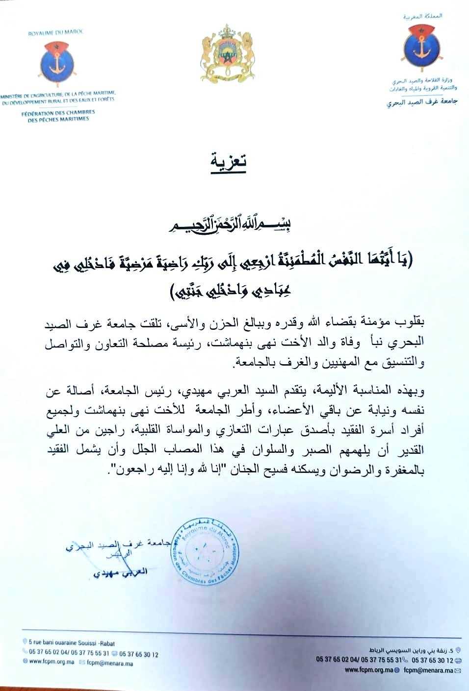 تصريح السيد المهيدي العربي رئيس جامعة غرف الصيد البحري بالمغرب بمناسبة أشغال الدورة العادية الثانية ...