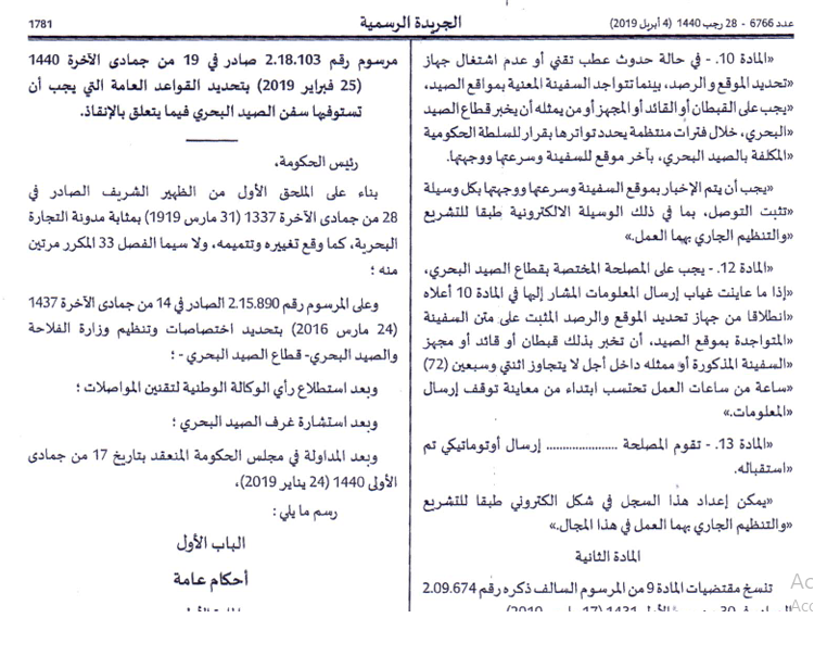 مرسوم 2011 متعلق بتحديد شروط وكيفيات صيد الأصناف البحرية